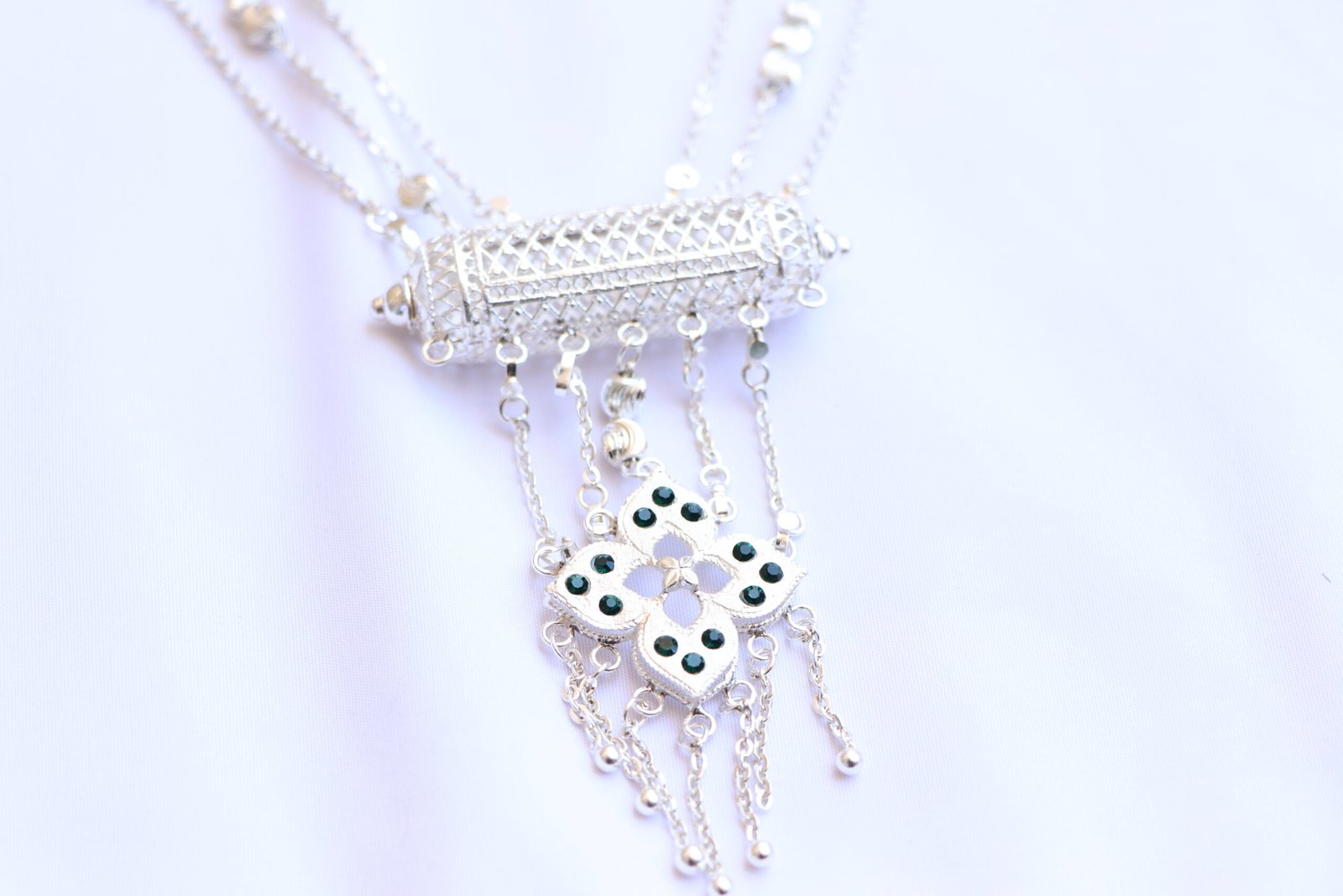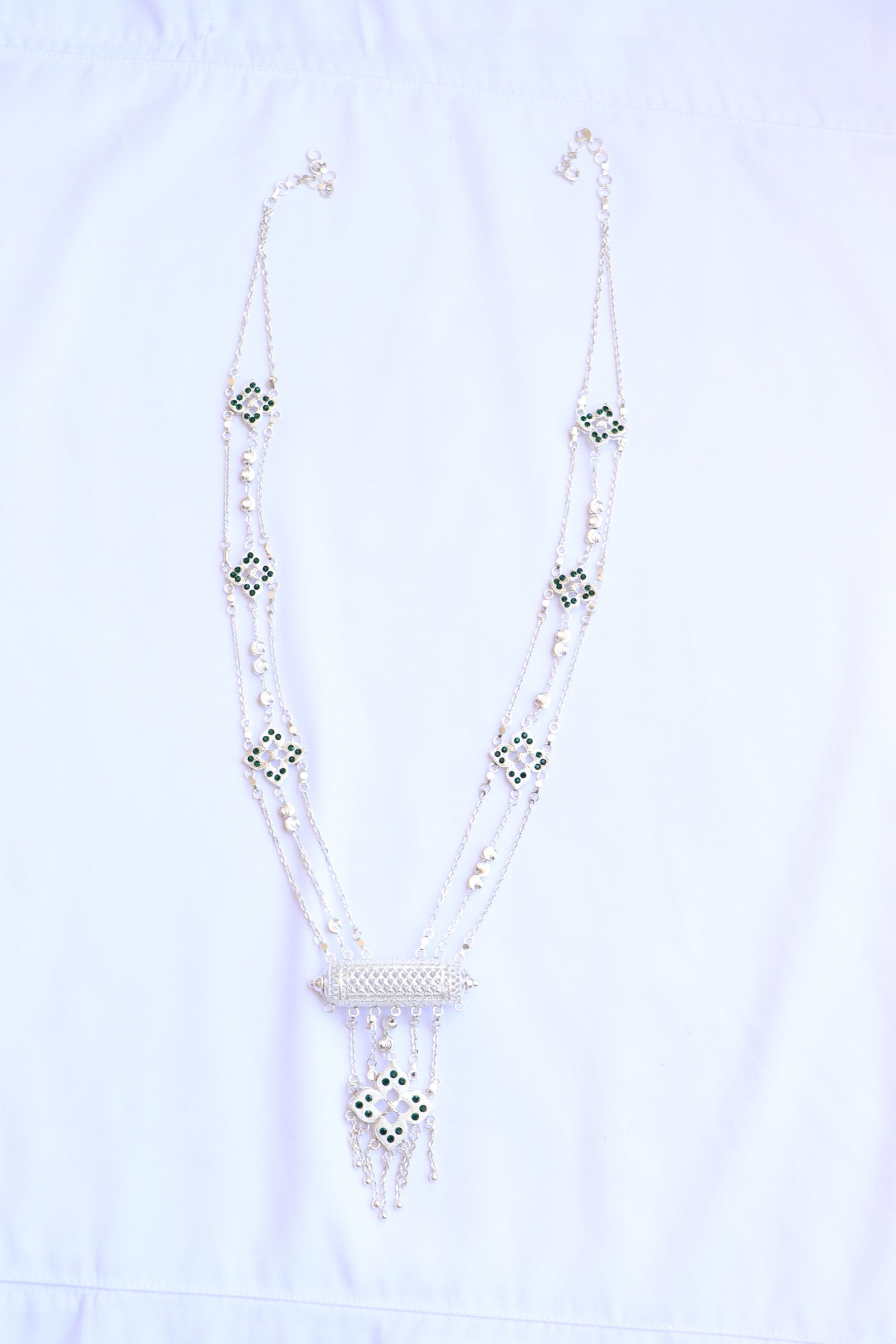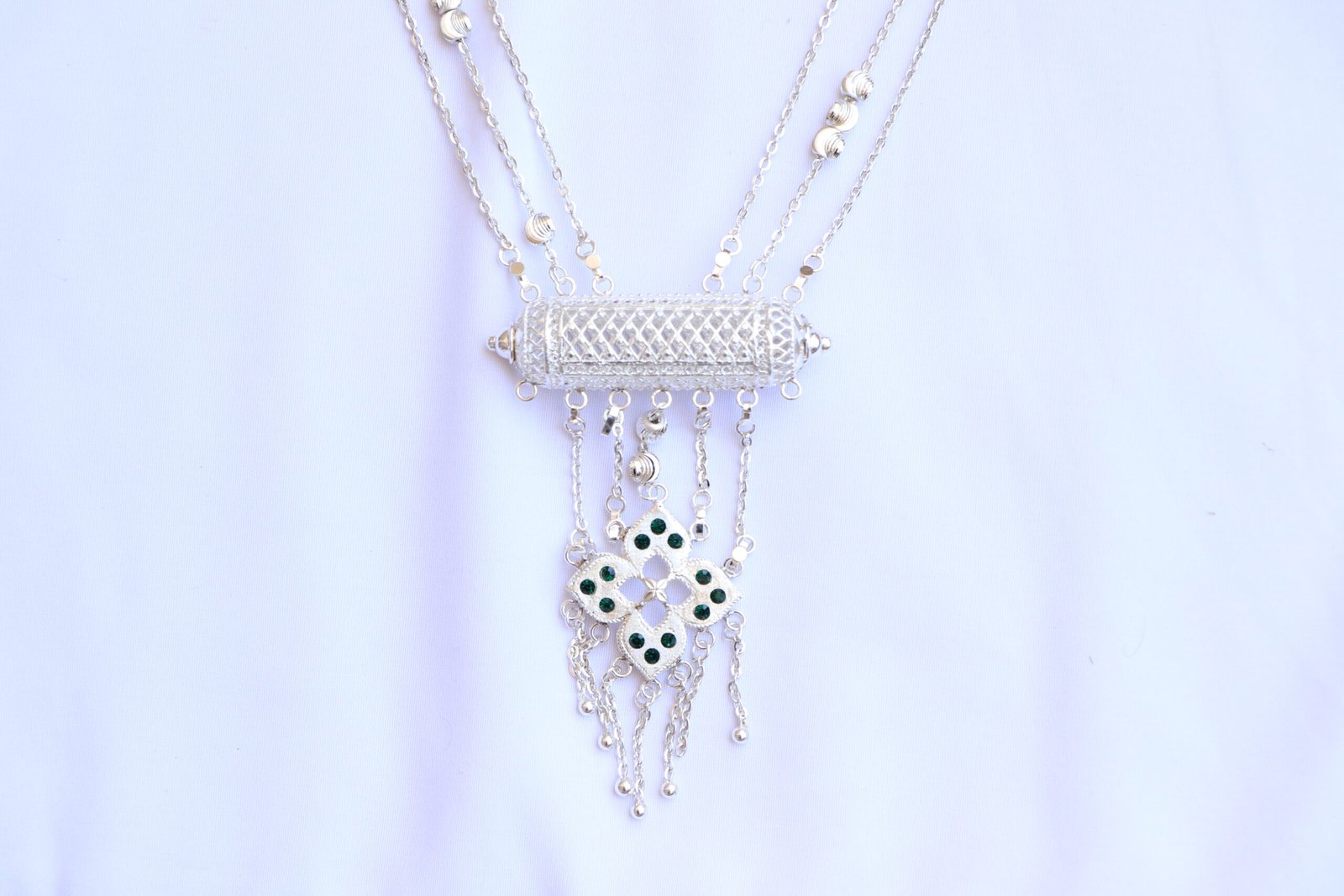 - النوع: عقد فضة نسائي بتصميم تراثي أنيق يناسب الإطلالات الكلاسيكية والمناسبات