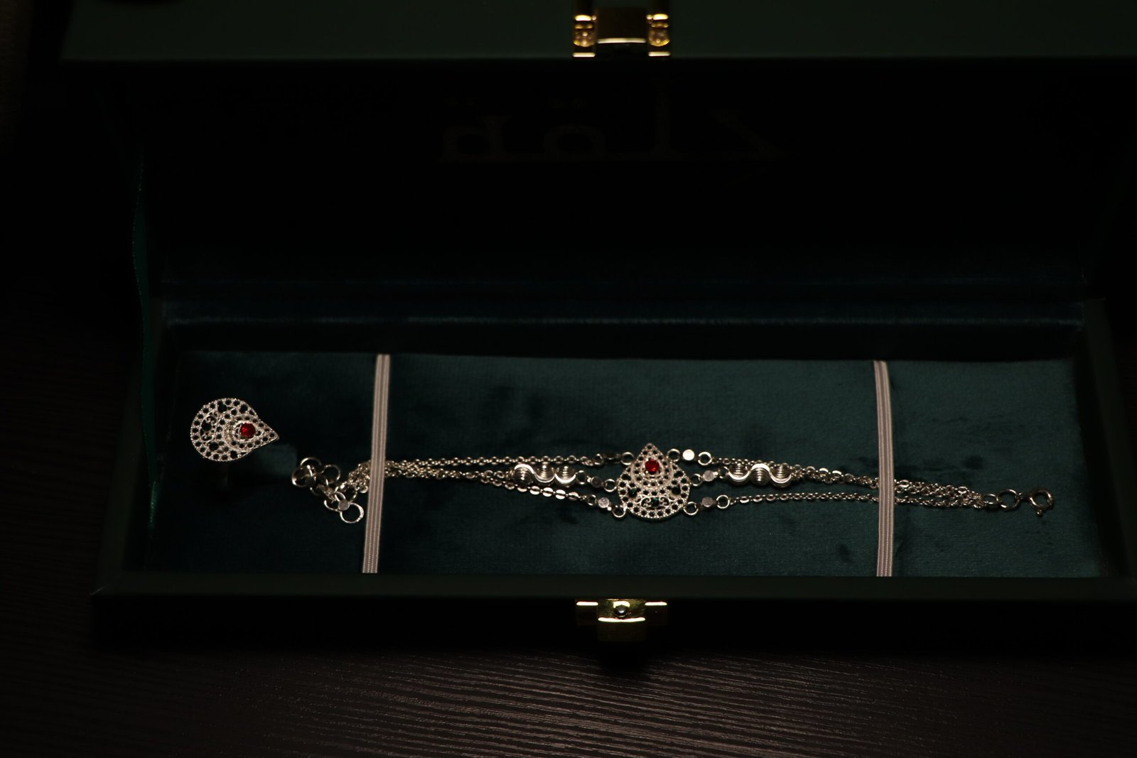 طقم اسوره وخاتم فضة 2 يتميز بسوار متعدد الطبقات من كل طرف وفصوص حمراء رائعة، ليضيف لمسة فاخرة وعصرية على مظهرك. صُمم بعناية ليجمع بين الأناقة والجودة وهذا يجعله خياراً مثالياً للمناسبات اليومية والخاصة.